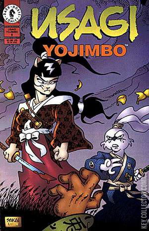 Lightning Strikes Twice : Usagi encounters the mysterious female samurai, Inazuma, whom he had met in previous travels. She has been on the run from assassins, and, during her brief rest, she tells the story of her drunken husband and the twists of fate that turned her into a fugitive.