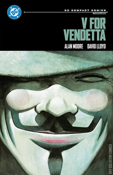Alan Moore and David Lloyd's powerful epic about loss of freedom and individuality gets the DC Compact Comics treatment! Taking place in a totalitarian England following a devastating war that changed the face of the planet, V FOR VENDETTA was the inspiration for the hit 2005 movie starring Natalie Portman and Hugo Weaving. This amazing graphic novel spotlights a mysterious man in a white porcelain mask and his young prot�g� as they fight political oppressors through terrorism and seemingly absurd acts. It's a gripping tale of the blurred lines between ideological good and evil and details a world where political and personal freedoms are non-existent.