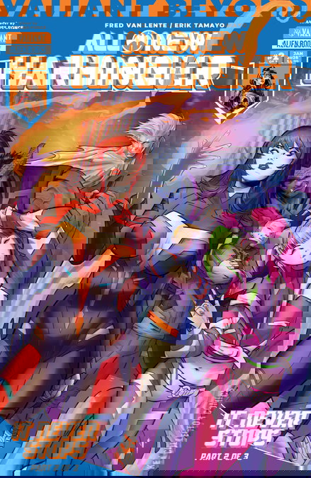 YOU GOTTA HAVE FAITH!All hell breaks loose in the women’s prison when the dampers are turned off and the super-lady criminals get their powers back up! While the NOLA Ambassador is distracted, Archer interrogates a key witness about Peter Stanchek’s character.But there’s no time to dwell, the Harbinger Field Team is set to make an appearance in the hottest night-show in town. Protecting the citizens and being glamorous on TV, all in a day’s work!Get ready for chapter two of “It Never Stops," from Fred Van Lente & Erik Tamayo.