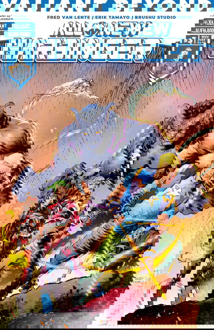 In this issue: A HARBINGER DIES! What, already? Yeah, we're not screwing around here in Valiant Beyond. Which member of the Harbinger Field Team falls to a pro-human terrorist 's unprecedented destruction of Foundation City? Flamingo? Crane? Alloy? CiCi? Team Leader Archer? Or the Supremum himself, Peter Stanchek?!THERE AREN'T ENOUGH EXCLAMATION POINTS TO IMPRESS UPON YOU HOW AWESOME THIS ISSUE IS!!! BUY IT!!!!!