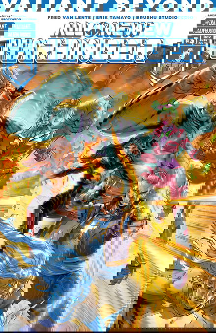 In this issue: A HARBINGER DIES! What, already? Yeah, we're not screwing around here in Valiant Beyond. Which member of the Harbinger Field Team falls to a pro-human terrorist 's unprecedented destruction of Foundation City? Flamingo? Crane? Alloy? CiCi? Team Leader Archer? Or the Supremum himself, Peter Stanchek?!THERE AREN'T ENOUGH EXCLAMATION POINTS TO IMPRESS UPON YOU HOW AWESOME THIS ISSUE IS!!! BUY IT!!!!!