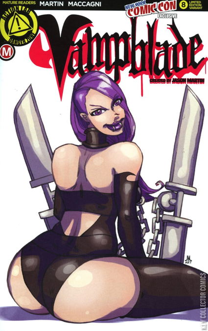 Katie’s been on a rough ride of late – fighting Detroit’s toughest infected, battling Space Knights, spelunking in sewage – but things are about to get much worse for our bladed bad ass, because now her weapons are turning on herself!! It’s Vampblade versus… the Vampblades!?! Features a risqué variant, plus “90s Monster” (Andrew Mangum) and artist (Hyde Chang) variants and risqué variants.