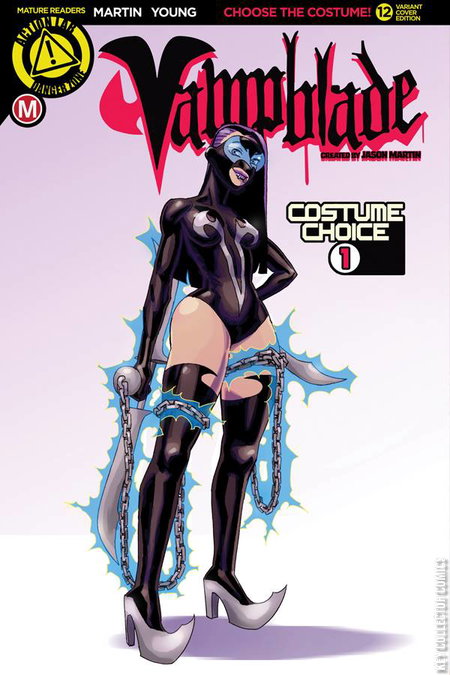 This is it!!! It's time for our blade-wielding heroine to reveal another all-new costume? and conclude her first year as the other-dimensional space vampire huntress by night (and comic shop owner by day)! Will super-geek Katie Carva survive and continue on as the Vampblade, or will someone new pick up the mantle?!? This special issue features three variant covers that will determine the Vampblade costume for season two!! Your orders for each cover help decide which costume will be worn in the book moving forward!