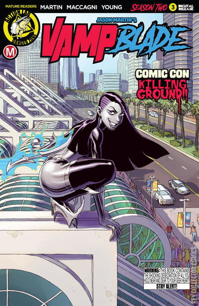 Katie and her comic shop gang continue their first team Vampblade mission at SoCal Comic Con, but things aren't going as planned. Instead of them finding the local vamp hub, they find the vamps turning the convention floor itself into an other-dimensional death trap! Features 3 covers (regular, artist, and 90s style), each with a risqu? variant as well!
