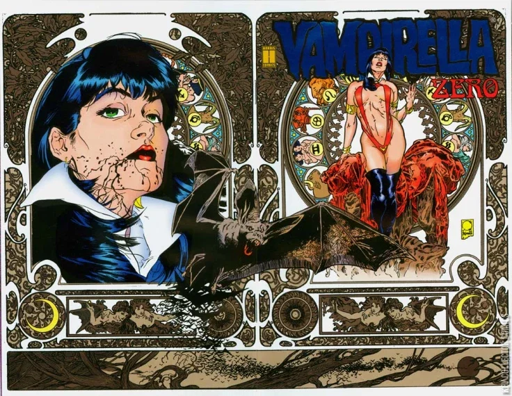 More foreshadowing of Vampirella's true origin. Members of a secret religious order use Pendragon in an attempt to destroy Vampirella, whom they believe will unleash unspeakable evil upon the Earth. This special “zero issue” bridges the gap between the “ Morning in America” saga and the full -color Harris series that debuted with the “Dracula War” storyline. In addition to the regular Red Foil Cover, there is a Platinum Variant Cover (available to members of the Scarlet Legion), a Gold Variant Cover, and a Royal Blue Variant Cover.