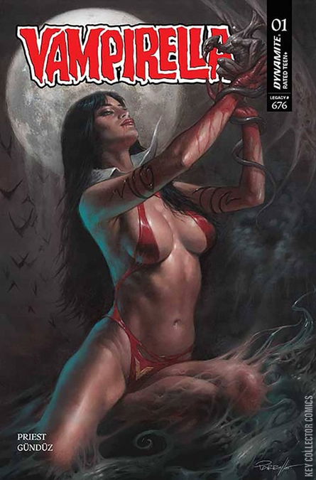 The team of Christopher Priest and Ergun Gunduz returns as 'The Long Night' begins! Vampirella's infant son, stolen by her evil twin Draculina, has finally been returned to her. But Vampi does not know the baby, has not bonded with him and, lost and alone, begins spiraling into postpartum depression. A mysterious figure named Cicero arrives, claiming to be Vampirella's infant son somehow transported 40+ years back from a dark future wherein Vampirella, consumed by bitterness, has become The Witch of Ashthorne, a ruthless matriarch responsible for a nuclear holocaust. Having finally rescued her baby from Draculina, Cicero begs Vampirella, for his sake and the sake of the world, to give the infant back.
