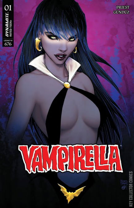 The team of Christopher Priest and Ergun Gunduz returns as 'The Long Night' begins! Vampirella's infant son, stolen by her evil twin Draculina, has finally been returned to her. But Vampi does not know the baby, has not bonded with him and, lost and alone, begins spiraling into postpartum depression. A mysterious figure named Cicero arrives, claiming to be Vampirella's infant son somehow transported 40+ years back from a dark future wherein Vampirella, consumed by bitterness, has become The Witch of Ashthorne, a ruthless matriarch responsible for a nuclear holocaust. Having finally rescued her baby from Draculina, Cicero begs Vampirella, for his sake and the sake of the world, to give the infant back.