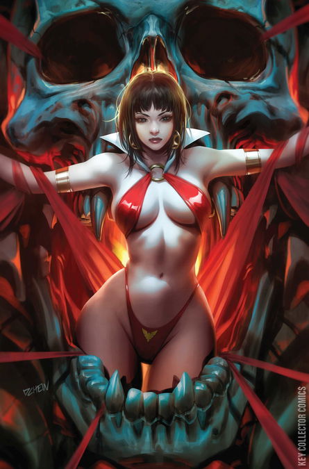 THE MAGNIFICENT VAMPI! Trapped in the 19th century Old West, the Daughter of Drakulon is faced with a stark choice: allow a rural town to be taken over by a deadly gang of blood-sucking lawmen, or use her own Vampiri abilities to save the town, and risk destroying her ability to return home through the resulting timestream interference! Grizzled comics gunslingers CHRISTOPHER PRIEST and ERGÜN GÜNDÜZ strap on their six-shooters for Vampirella #12 — flanked by cantankerous cover artists LUCIO PARRILLO, DERRICK CHEW, JOSEPH MICHAEL LINSNER, ELIAS CHATZOUDIS, and cosplay by RACHEL HOLLON!