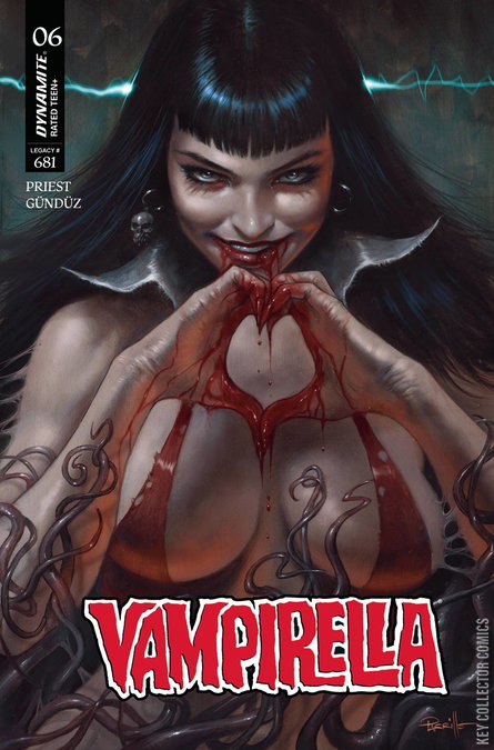 THE LONG NIGHT CLOSES! In the dark future, Vampirella rules the world as a ruthless global dictator locked in a life-or-death struggle to stave off an invasion of the Earth by the terraforming Ancient Ones who created the planet Drakulon millennia ago. Caught between his totalitarian mother and his vengeful ex-girlfriend whose space beacon provoked the invasion, Vampirella's son Cicero struggles to hang onto what little is left of his own humanity while sealing the fate of his infant self in the present timeline! Master tale-weavers CHRISTOPHER PRIEST and ERG�N G�ND�Z conclude their saga of "The Long Night" in Vampirella #6 - augmented by outlandishly appealing covers from LUCIO PARRILLO, GREG LAND, MEGHAN HETRICK, ELIAS CHATZOUDIS, and cosplay by RACHEL HOLLON!