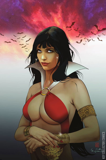 After repeatedly dying then waking up to relive the same day, Vampirella finally cracks the mystery of her temporal prison by assembling clues from the tormenting visions she had thought were just recurring nightmares. Armed with this new awareness, the Daughter of Drakulon discovers the key to restoring her 'real' reality: make sure she's not murdered again! Acclaimed author CHRISTOPHER PRIEST and fan-favorite artist ERG�N G�ND�Z shift the celebration of Vampirella's six decades in comics into high gear with Vampirella #668 - continuing the series' legacy numbering that reflects all of Vampi's previous appearances in print, and featuring timeless new covers from LUCIO PARRILLO, ELIAS CHATZOUDIS, and CARLA COHEN! ALL COVERS CARDSTOCK