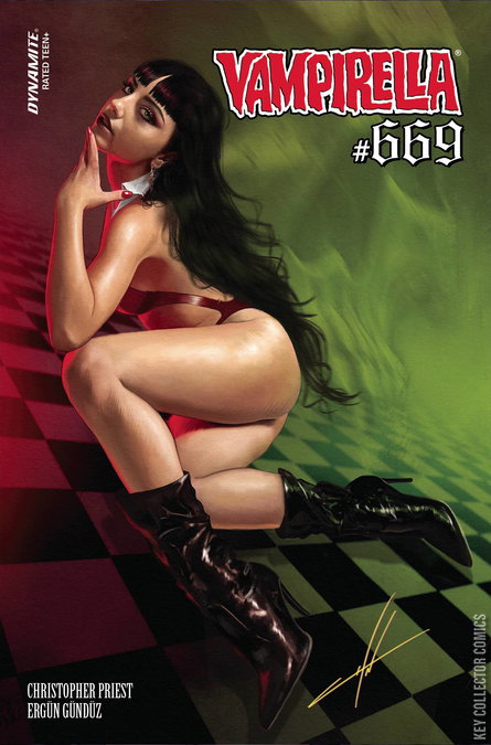 In chapter Four of 'Beyond,' the truth strikes home as Vampi finally realizes that reality as she has known it has been radically changed - for the better! Having now discovered the source of this universe-wide retcon, she is challenged to engage an old enemy in order to return everything to normal. But the question is: should she? The celebration of Vampirella's sixth decade in comics - and the countdown to issue #700 - picks up speed with Vampirella #669, crafted by the acclaimed creative team of CHRISTOPHER PRIEST and ERG�N G�ND�Z, and featuring timeless new covers from LUCIO PARRILLO, ELIAS CHATZOUDIS, and CARLA COHEN!