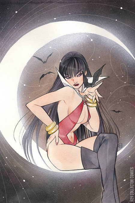 Special Horror Issue! In this standalone tale and perfect jumping-on point, "Ella Normandy" has been outed on social media as the space-vampire Vampirella, drawing the attention of a wide selection of deeply dysfunctional fans, two of whom claim to be ghosts seeking her help to avenge their murders.