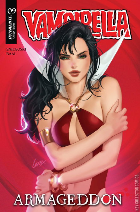 DARK VAMPI RISING! In this issue: All Hell breaks loose — literally! Rising up from the deepest circles of the Inferno, Dark Vampirella has been loosed upon the world, and she’s bringing fiery vengeance with her! Can the heroic Daughter of Drakulon stand up to her bigger, badder self and survive to drink blood another day? Find out in the brimstone-scented pages of Vampirella: Armageddon #9, from the diabolically creative team of TOM SNIEGOSKI and EDU MENNA — featuring sinfully sensuous covers from FRANCESCO MATTINA, LESLEY “LEIRIX” LI, JOSEPH MICHAEL LINSNER, and cosplay by LAUREN DELOREAN!