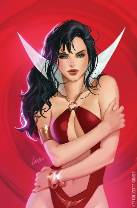 DARK VAMPI RISING! In this issue: All Hell breaks loose — literally! Rising up from the deepest circles of the Inferno, Dark Vampirella has been loosed upon the world, and she’s bringing fiery vengeance with her! Can the heroic Daughter of Drakulon stand up to her bigger, badder self and survive to drink blood another day? Find out in the brimstone-scented pages of Vampirella: Armageddon #9, from the diabolically creative team of TOM SNIEGOSKI and EDU MENNA — featuring sinfully sensuous covers from FRANCESCO MATTINA, LESLEY “LEIRIX” LI, JOSEPH MICHAEL LINSNER, and cosplay by LAUREN DELOREAN!