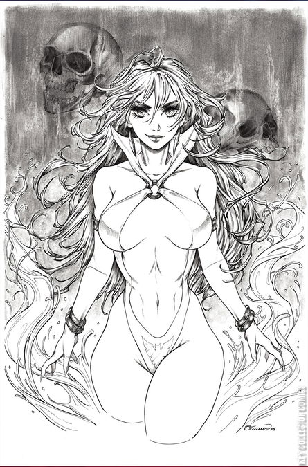 'When her age-old nemesis finally gives up the ghost, Vampirella is lured to his rural gothic estate of Rookhaven to hear the reading of his last will and testament. There, she meets the manor staff - the prurient assistant, the wild-eyed groundskeeper and his pensive young daughter, and the sinister and enigmatic Mr. Frey. Expecting a trap, Vampirella and her young companion are not disappointed - but they also get more than they bargained for in this thrilling adventure! Written by SARA FRAZETTA and BOB FREEMAN and illustrated by ALBERTO LOCATELLI, this brand-new miniseries is steeped in gothic horror, complete with a sinister mansion, a mist-enshrouded graveyard, and a bevy of witches, ghosts, werewolves, and ancient satanic magicks. And all of it is enclosed in an amazing assortment of covers from some of comics' greatest artists, including LUCIO PARRILLO, COLLETTE TURNER, ERGUN GUNDUZ, series artist ALBERTO LOCATELLI, and Frazetta Girls' very own SARA FRAZETTA! '