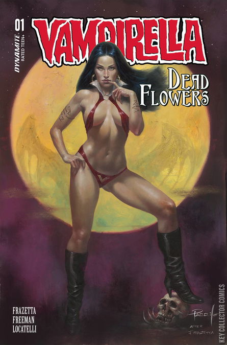 'When her age-old nemesis finally gives up the ghost, Vampirella is lured to his rural gothic estate of Rookhaven to hear the reading of his last will and testament. There, she meets the manor staff - the prurient assistant, the wild-eyed groundskeeper and his pensive young daughter, and the sinister and enigmatic Mr. Frey. Expecting a trap, Vampirella and her young companion are not disappointed - but they also get more than they bargained for in this thrilling adventure! Written by SARA FRAZETTA and BOB FREEMAN and illustrated by ALBERTO LOCATELLI, this brand-new miniseries is steeped in gothic horror, complete with a sinister mansion, a mist-enshrouded graveyard, and a bevy of witches, ghosts, werewolves, and ancient satanic magicks. And all of it is enclosed in an amazing assortment of covers from some of comics' greatest artists, including LUCIO PARRILLO, COLLETTE TURNER, ERGUN GUNDUZ, series artist ALBERTO LOCATELLI, and Frazetta Girls' very own SARA FRAZETTA! '