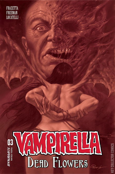 Horrific forces collide as the sinister machinations of Mr. Frey and Frances Moore are revealed. Vampirella and her allies must confront evil head-on - or risk losing young Evie to utter darkness! Written by SARA FRAZETTA and BOB FREEMAN and featuring art by ALBERTO LOCATELLI, the hair-raising thrill-fest that is Vampirella: Dead Flowers ratchets up the tension until you feel like you're going to scream! Add in some terrifyingly terrific covers from talents like LUCIO PARRILLO, COLLETTE TURNER, ERG�N G�ND�Z, and series scribes FRAZETTA & FREEMAN, and you've got the perfect read to keep you up all night!
