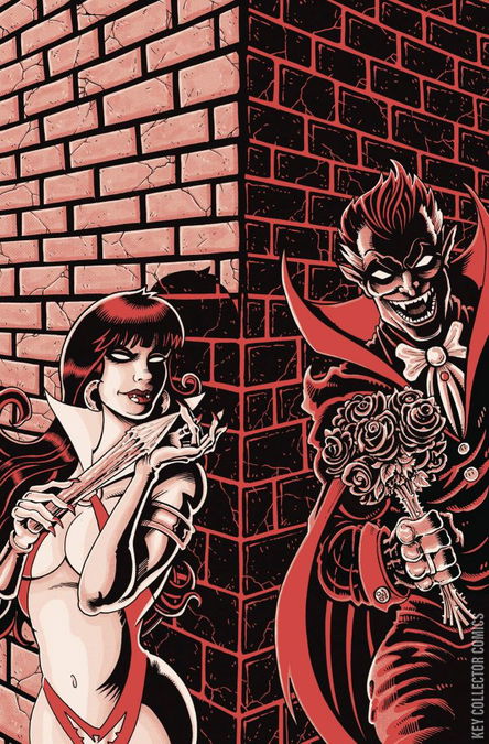 Having completed the blood rite intended to rid her new husband of the Dracula virus, Vampirella returns to America, only to discover the shadow of the vampire lord continues to loom as Dracula asserts himself in assimilating his human host. Complicating matters even more is Vampirella's new mother-in-law, who engineers a confrontation between Vampi's new husband and the soulmate he left behind to marry her, thus triggering the strangest love triangle in Vampirella's history!