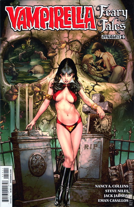 The celebration of the 45th anniversary of the creation of everyone's favorite vampire vixen reaches its senses-shattering conclusion in the fifth and final issue of Feary Tales. Vampirella is shocked when she meets the pun-happy Storyteller face-to-face, only to end up hip-deep in alligators in Steve Niles' (Thirty Days of Night, Army of Darkness, October Faction) swamp-monster retelling of 'The Frog Prince'. Then, in Nancy A. Collins' (Vampirella, Sunglasses After Dark, Swamp Thing) twisted take on 'Sleeping Beauty', a major character from the original Warren run is reintroduced when Vampirella finally discovers the true identity of her mysterious doppelganger and learns about her hidden connection to the enchanted book she is trapped inside in a weird and wicked resolution that ties in with the on-going monthly title-provided Vampi can escape a castle full of walking dead that have awoken from their centuries-long slumber with a royal appetite...