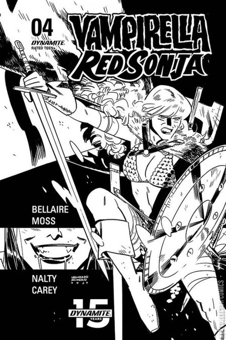 LET THE TEAM-UP BEGIN! In this issue: Vampirella takes a potion. Red Sonja gets hung upside-down by magic. A magical mystical mysterious gem begins to reveal its secrets. And many, many, SO many hamburgers are consumed. The ongoing sensation continues courtesy of JORDIE BELLAIRE (Buffy The Vampire Slayer) and DREW MOSS (Star Wars)!