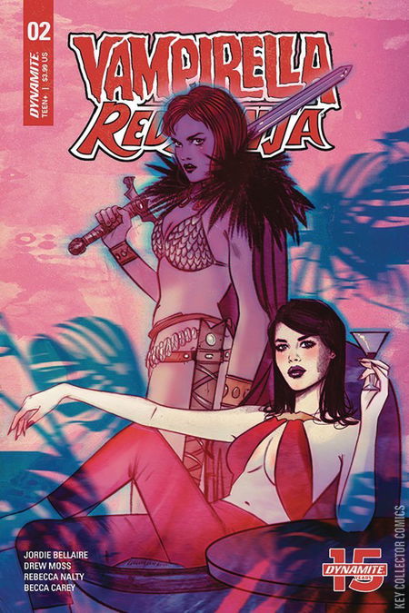 LET THE TEAM-UP BEGIN! In this issue: Vampirella takes a potion. Red Sonja gets hung upside-down by magic. A magical mystical mysterious gem begins to reveal its secrets. And many, many, SO many hamburgers are consumed. The ongoing sensation continues courtesy of JORDIE BELLAIRE (Buffy The Vampire Slayer) and DREW MOSS (Star Wars)!