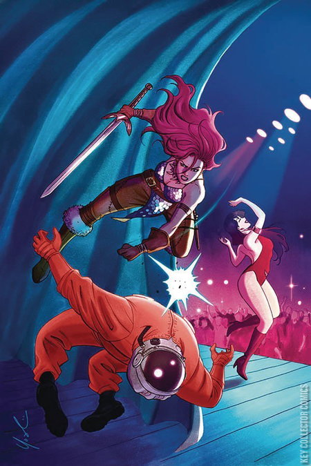 REUNITED! After months apart (or was it days? Hours? Minutes? Time travel's weird), Sonja The Red and Vampi have found one another...and just in time, as there's an evil lurking in the timestream...something big, something mean, something neither of them could handle alone... And, because it's February, we're celebrating Valentine's Day with a special variant by artist Lynne Yoshii!