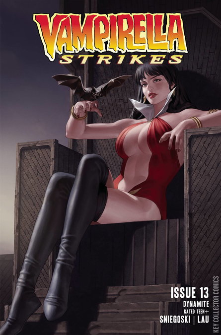 Final issue! It's been 15 years since the death of Mistress Nyx and the world is slowly recovering, but this isn't a world that we've ever seen before. This is a world where the natural and the supernatural have merged to create a dangerous new place - a world very much in need of Vampirella. Deep beneath the streets of Sepulcher City an ancient goddess stirs. Vampirella and the werewolf, Dagwood, are on a mission to save an innocent child and confront a demonic deity with a forbidden knowledge of the future - a future where Vampirella herself is responsible for the end of the world! Enter the world of Vampirella Strikes under a series of amazing artist by returning superstars Lucio Parillo, Stephen Segovia, Jonathan Lau, Junggeun Yoon, and another stunning cosplay cover featuring Dizzy Ms. Lizzyy as Vampirella!