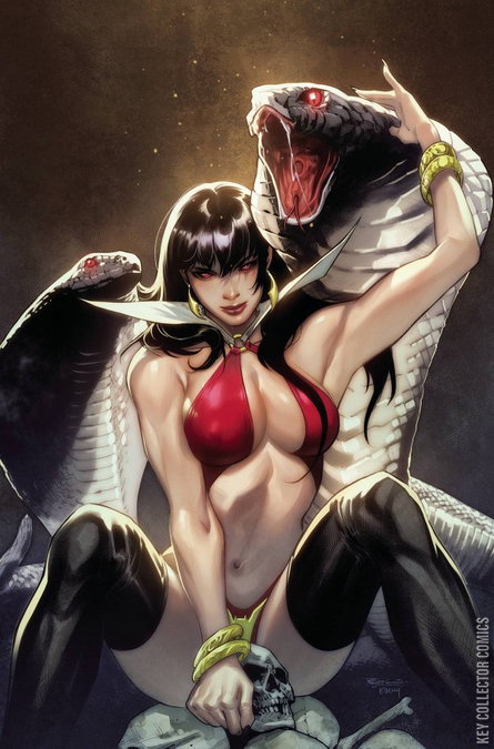 Having fulfilled her role of in Vengeance, Vampirella is now posed to Strike in an all-new series arising from the post-apocalyptic ashes of Dynamite's Vengeance of Vampirella series! It has been fifteen years since the death of Mistress Nyx and the world in slowly recovering, but this isn't a world that we've ever seen before. This is a world where the natural, and the supernatural have merged to create a dangerous new place-A world very much in need of Vampirella. Demonic weapons of all kinds are on the newly freed streets and Vampirella leads a righteous quest to protect the citizens of this strange new land, amidst all manner of things that want to eat them - and her - alive! Enter the world of Vampirella Strikes under a series of amazing artist by returning superstars Lucio Parillo, Stephen Segovia, Jung-Geun Yoon, and another stunning cosplay cover - featuring superstar Ani-Mia as Vampirella!!