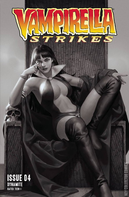 Having fulfilled her destiny in Vengeance, Vampirella is now poised to Strike in this series arising from the post-apocalyptic ashes of the acclaimed series Vengeance of Vampirella! In this issue, the threat of the Drujh weapons intensifies. After the assault on Danse Macabre headquarters by those possessed by the weapons from Hell, Vampirella and the team are left in disarray. Something is about to happen that could threaten all life in Sepulcher City...and eventually the world. Something drastic is going to need to be done-but what? This is the penultimate chapter of the Drujh saga! Enter the world of Vampirella Strikes under a series of amazing artist by returning superstars Lucio Parillo, Stephen Segovia, Jung-Geun Yoon, and a stunning cosplay cover featuring Rachel Hollon as Vampirella!!
