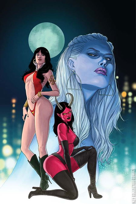 So yeah. Vampirella and Purgatori. Vampi, the Vampiri with a conscience and Tori, the lady-shaped creature who eats conscience. Working together? Not really. Working towards a common goal, while considering tearing each other's throats out, more like! And that common goal is to stop Lilith and her near-infinite minions from having their rough, rude way with the entire human race. The stakes are big enough... and sharp enough. Everybody's in... it's time to ante up.