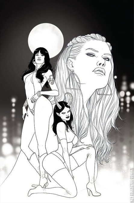 So yeah. Vampirella and Purgatori. Vampi, the Vampiri with a conscience and Tori, the lady-shaped creature who eats conscience. Working together? Not really. Working towards a common goal, while considering tearing each other's throats out, more like! And that common goal is to stop Lilith and her near-infinite minions from having their rough, rude way with the entire human race. The stakes are big enough... and sharp enough. Everybody's in... it's time to ante up.