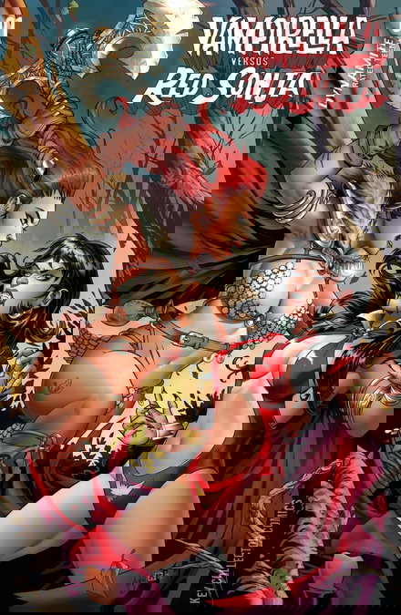 It's a monumental clash of titans that had to happen, from master storyteller Dan Abnett! Both Vampirella and Red Sonja were recruited by the Project, a cosmic collection of superheroes sworn to protect all known universes. But Vampirella is now considered a murderous criminal - and she's capable of defeating any hero. Unfortunately for her, Red Sonja is no hero... It's a universe-spanning, action-packed battle royal from start to finish, by Dan Abnett (Dejah Thoris) and Alessandro Ranaldi (Jennifer Blood)!