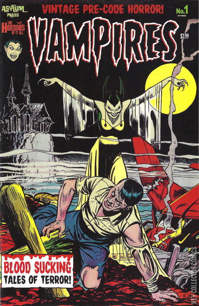 Sink your teeth into October's horrifically haunted Halloween one-shot special It's sure to drain the ever-livin' life out of you - or at least drive you batty! Editor/host Mr. Karswell returns with yet another creepy, creaking castle literally swarming with vicious pre-Code vampires! Featuring rarely seen blood sucker classics from the gory Golden Age of comics, highlighting the spine-chilling art of Lou Cameron, Dick Beck, George Klein, and more! Featuring the classic tales: "Vampire's Bite," "One Door from Disaster," and "Vampire Castle." Featuring vintage comic book ads and commentary by host Mr. Karswell.