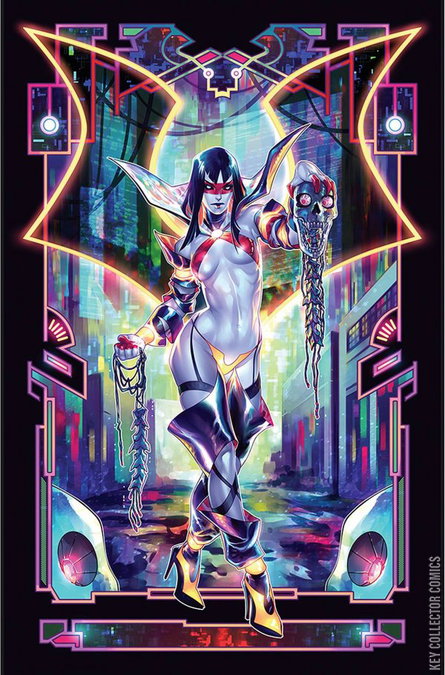The mysterious and deadly Bloodwing is killing all the Vampirellas throughout the fabric of reality-but who is he, and why is he doing this? It's up to Vampirella to learn the secrets of Bloodwing and stop him. Thanks to the Book of Prophecy (in a very unexpected way), Vampirella embarks on her most mind-bending adventure yet, traveling the various Threads of the Fabric to rally the Vampirellas of the multiple realities to join her in stopping the extermination of her self. First stop, an apocalyptic world transformed by a Chaos Plague. Will the Vampirella of this ravaged world heed our Vampirella's warning, or will she too fall to the savagery of Bloodwing?