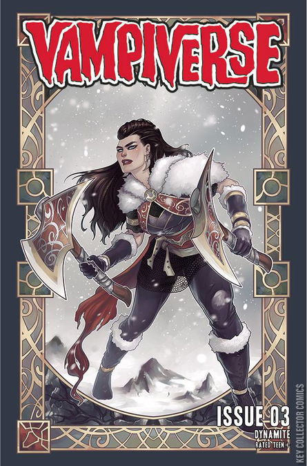 With the monstrous Bloodwing in pursuit, Vampirella, Book, and the adorable-yet-deadly Baby Prague continue their search for the missing pages from the Book of Prophecy. Along the way, they'll run into never-before-seen Vampirellas across the fabric of time and space who're to aid them in thwarting Bloodwing's plan of reshaping reality. Also: in this issue we meet The Vamp, a pulp-style crime fighter who could give the Shadow a run for his money (if he carried money)!