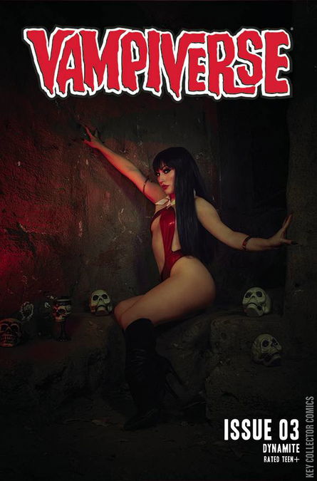 With the monstrous Bloodwing in pursuit, Vampirella, Book, and the adorable-yet-deadly Baby Prague continue their search for the missing pages from the Book of Prophecy. Along the way, they'll run into never-before-seen Vampirellas across the fabric of time and space who're to aid them in thwarting Bloodwing's plan of reshaping reality. Also: in this issue we meet The Vamp, a pulp-style crime fighter who could give the Shadow a run for his money (if he carried money)!