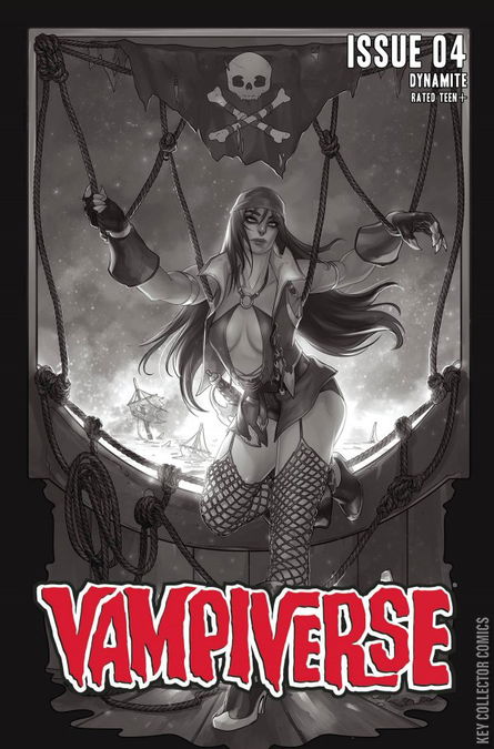 New Vampirellas abound as our thrilling saga wends through time, space, and everything in between!. Vampirella, Book, Baby Prague, Lilith, and The Vamp are fighting for their lives in a most inhospitable place from long, long ago. And with a new reality comes a new Vampirella! Introducing... Vamp-Por, the Vampirella from the dawn of time with dark secrets of her own, and Futurella, the Sci-Fi Vampirella hellbent on helping save the Fabric of reality created by the Artist. But has Bloodwing finally gained the upper hand in her quest to reshape all existence in her twisted image?