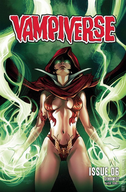 In this issue, the evil Vampirella, Bloodwing, and her captive Book at last reach the fabled Library, the final stop before she can carry out her nefarious plan of destroying the Artist and rewriting all of the Vampirellas' realities. But there are still major roadblocks: Book is missing the crucial pages that will lead them directly to the Artist, and an army of Vampirellas from realities far and wide hellbent on stopping her have just arrived at the Library. Will the daughters of Drakulon be able to defeat their psychotic sister and save the threads of the Fabric, or will Bloodwing vanquish them all and reshape their stories in her own glorious, twisted image?