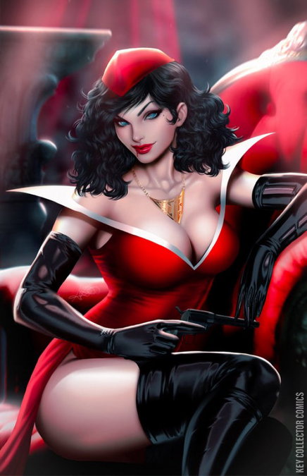 Torn from the pages of the hit series, Vampiverse! Meet this reality's version of Vampirella, the Vamp, a mysterious crime fighter in the 1930s classic pulp style who could give the Shadow a run for his money! But who is the Vamp? Where did she come from, and how did she become the scourge of all things evil? And what is her terrifying connection to the Cult of Chaos? Join us this summer for a titanic tale of terror, action and adventure from the creative team behind the hit VAMPIVERSE miniseries!