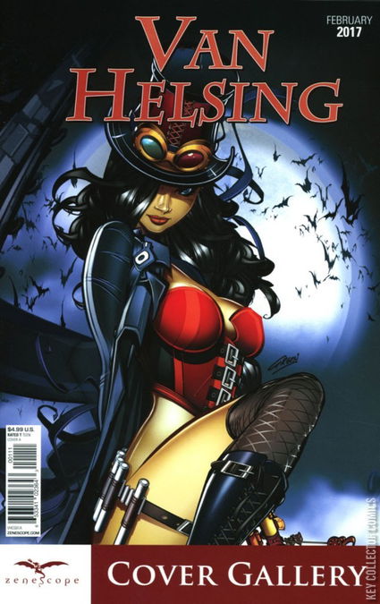 The comic book series that inspired SyFy's new hit TV series, VAN HELSING, finally releases its very first cover gallery issue! Liesel Van Helsing, Zenescope's British steampunk vampire hunter, is one of comics' most iconic and stylistic heroines. And some of the best comic book artists in the industry have drawn her to perfection. With artwork by names such Jamie Tyndall, Richard Ortiz, Paul Green, Sean Chen, and many others, this insanely gorgeous Van Helsing Cover Gallery is a must-have for any fan!