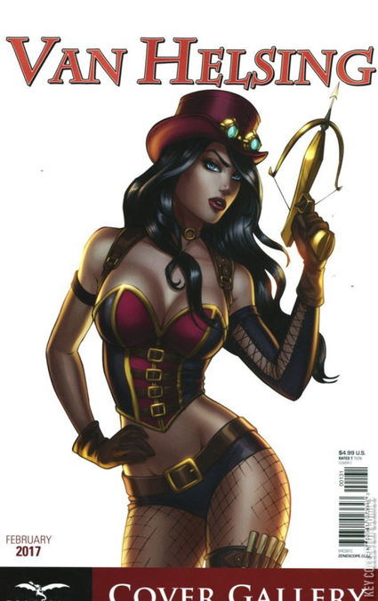The comic book series that inspired SyFy's new hit TV series, VAN HELSING, finally releases its very first cover gallery issue! Liesel Van Helsing, Zenescope's British steampunk vampire hunter, is one of comics' most iconic and stylistic heroines. And some of the best comic book artists in the industry have drawn her to perfection. With artwork by names such Jamie Tyndall, Richard Ortiz, Paul Green, Sean Chen, and many others, this insanely gorgeous Van Helsing Cover Gallery is a must-have for any fan!