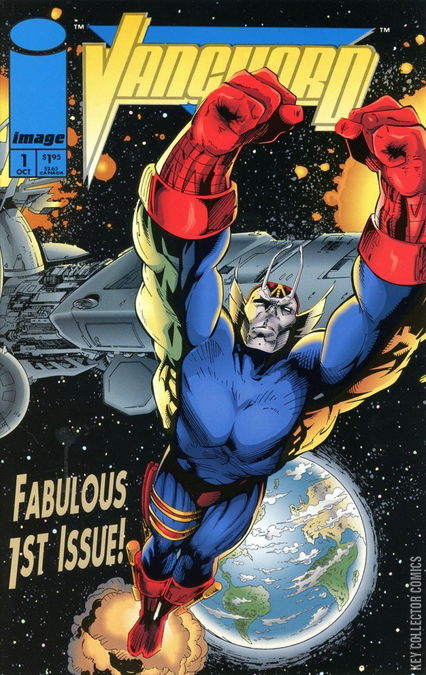 Supreme continues to confront Vanguard while in orbit, which leads to a hot-tempered battle between the two. Vanguard is eventually beaten by the respected hero, and is left unconscious in front of a branch of the Chicago Police Dept. Vanguard's helmet, however, which he uses to translate and speak alien languages, is lost and damaged during the battle, but is discovered by news reporter Roxanne wells. In a back up story, a prior story is told of the time a Cosmo VII robot from the Soviet Union attacks Vanguard in his space station, drawing him to Earth, creating tension between the USA and certain officials in the USSR. The back-up story is a reprint of Erik Larsen's first work in comic books, from Megaton #1, in 1982.