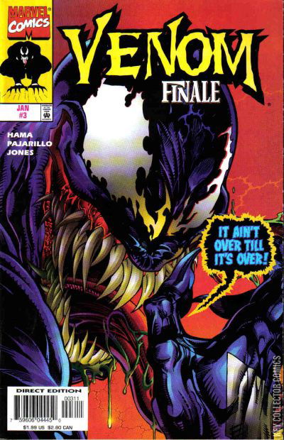 - Final issue of a three-part limited series that marked the end of an era for the Venom character who headlined twenty-three miniseries over a 5 year period