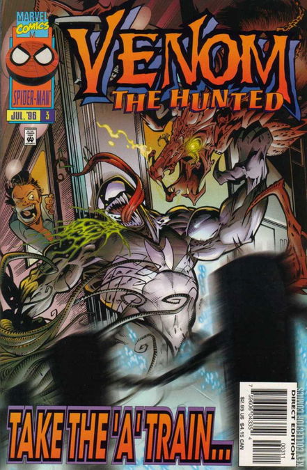 It's a chase through the subways as symbiote-eating nasties try to make Venom their latest meal. Fortunately our reluctant hero has help from...skateboarders? Trapped into a corner like a rabid badger, Venom snaps and goes for the jugular of the symbiote-hunting predator, the Xenophage!