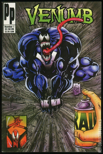 Cover by Bill Maus. Story and art by Bill Maus. Another superhero spoof by Parody Press, this one sending up the popular Spider-Man villain Venom. An alien parasite with an extraordinarily long tongue wonders why his proportions arent more realistic. 32 pages, B&W. Cover price $2.50.