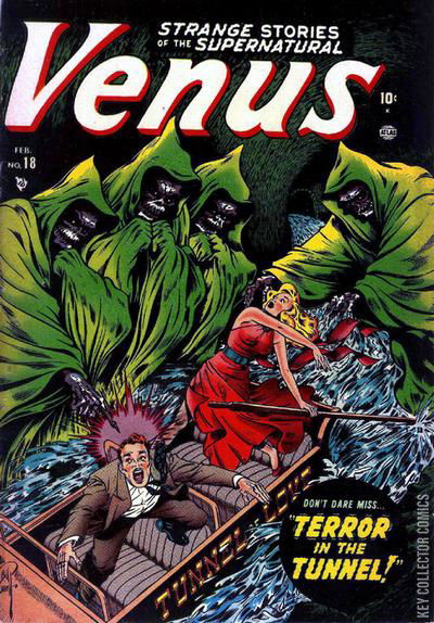 "The Sealed Specters." Venus and Whitney Hammond enter a tunnel of love, only to discover strange creatures. "The Mad Mountain!" After a plane crash, Venus encounters plant creatures. Also includes: "Tidal Wave of Terror!"; "The Little Man"; and "Beware...The Cat-Woman's Revenge." Pencils, inks, and cover by Bill Everett.