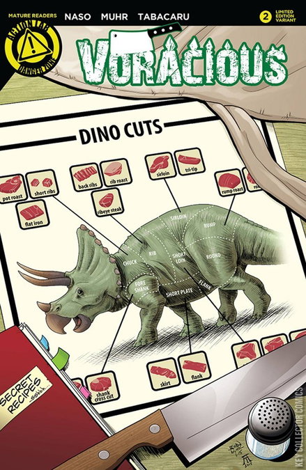 GOING BACK IN TIME TO MAKE THE PERFECT SANDWICH! Nate and Starlee open their restaurant and the secret dinosaur dishes make it an instant success. But Starlee's Sheriff brother isn't all that happy about her choice of business partner. Meanwhile, Maribel and Captain Jim have a heart-to-heart in the desert. With tomahawks. Featuring a 'Meat Chart' variant cover by series artist Jason Muhr limited to 1500 copies!