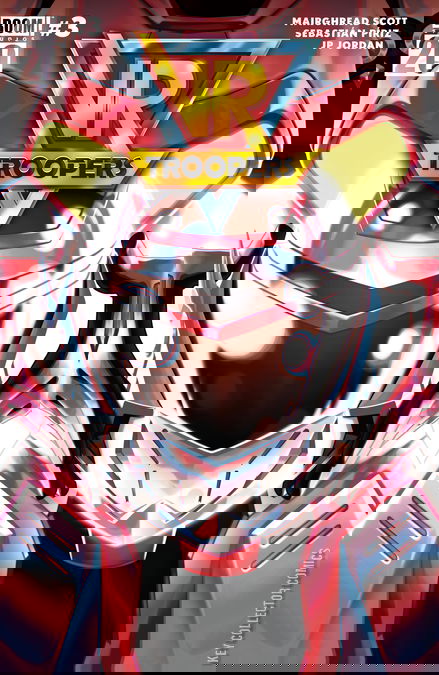 An explosive reveal changes everything for the VR Troopers in this must-read issue!As Kaitlin works to uncover Grimlord’s secrets, Ryan and JB follow a trail of clues left behind by Ryan’s father. But someone else is after the same answers—and they’re closer than the VR Troopers could ever suspect…Don’t miss the shocking twist fans won’t see coming as a mysterious new arrival reveals a game-changing secret!
