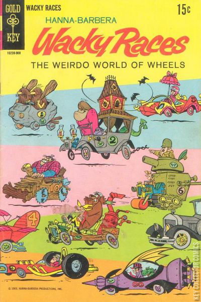 The Wacky Racers race to Handspring, Wyoming. In first place: Creepy Coupe; second: Boulder Mobile; third: Arkansas Chug-a-bug. The Wacky Racers race from Sappy Sota Springs to Squishy Squash. In first place: Arkansas Chug-a-bug; second: Buzzwagon; third: Compact Pussycat. The Wacky Racers race to Tubba, Washington. In first place: Turbo Terrific; second: Convert-a-Car; third: Arkansas Chug-a-bug. Based on the cartoon series, which ran on CBS from 1968 to 1969.
