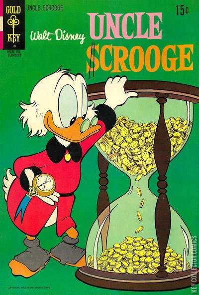 Scrooge tries to prove to Donald and the nephews that he can find riches anywhere. Cover is reprinted from Uncle Scrooge #12 (Dell Publishing)